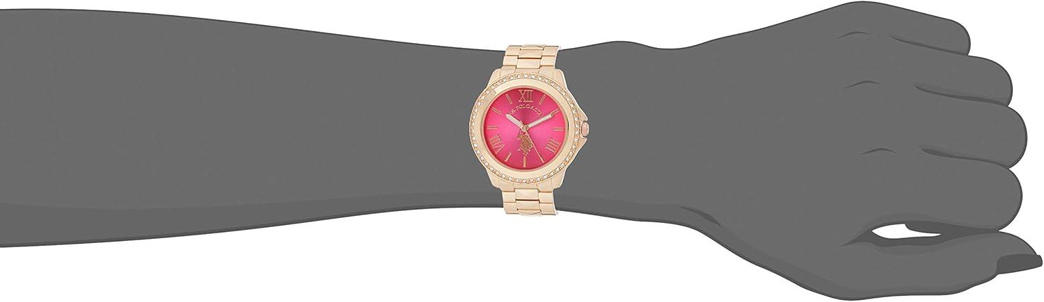 This classic women's rose gold dial bracelet watch is just timeless and can be an everyday ladies' watch to match any outfit. It features a simples design of rose gold Arabic even numbers & sticks on fuchsia dial with luminous hour/minute hands which are very helpful in time reading especially in the dark.