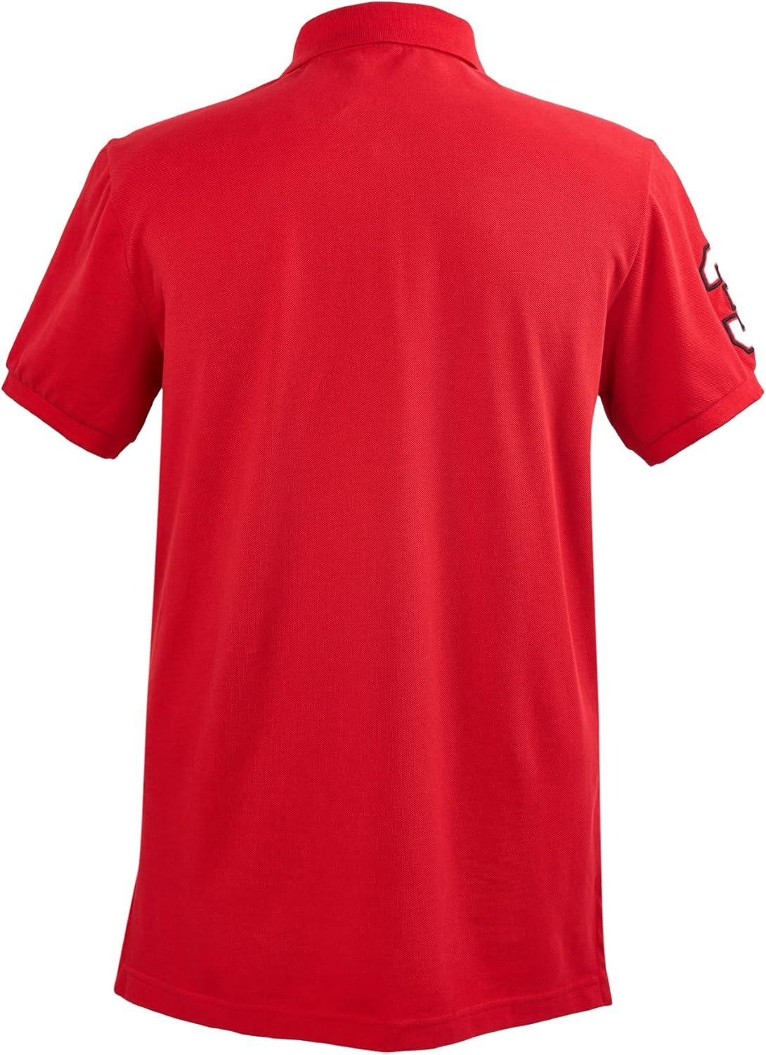 U.S. Polo Assn. Men’s Short-Sleeve Polo Shirt with Applique, Casual Summer Slim Fit Polo Shirt with Contrast Color(Red)
