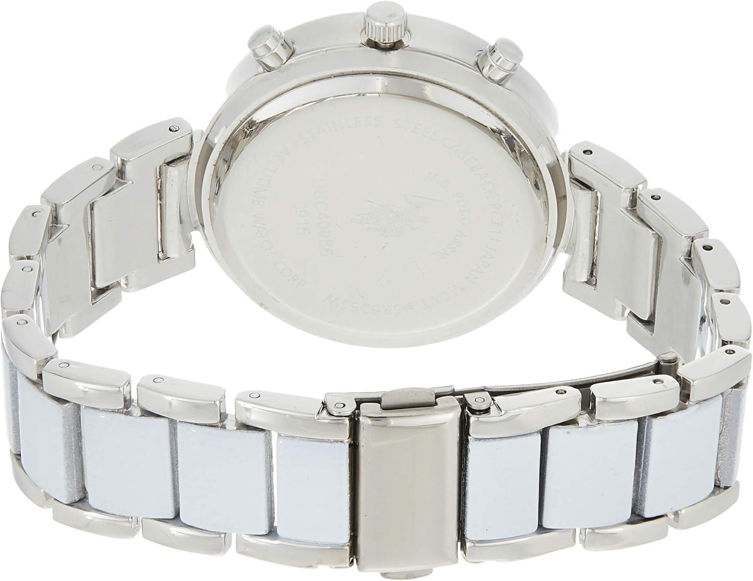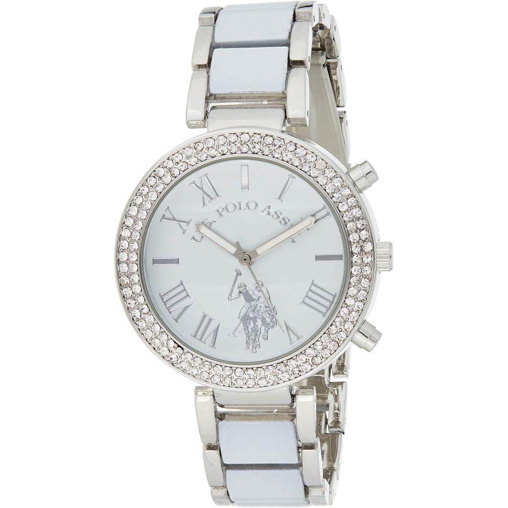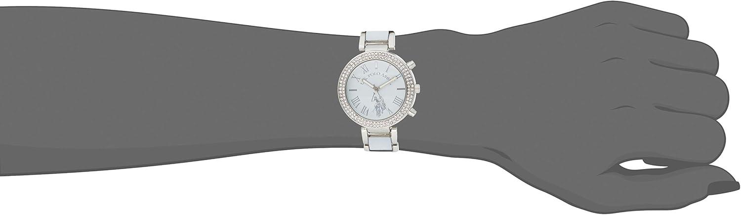 Add glamorous yet practical style to your look with this rhinestone, crystal studded women's silvertone watch. The breathtaking white color dial is home to hourly stick markers and hands for easy time-telling. This stunning women's watch from U.S. Polo Assn. is also ideal as a gift for ladies.